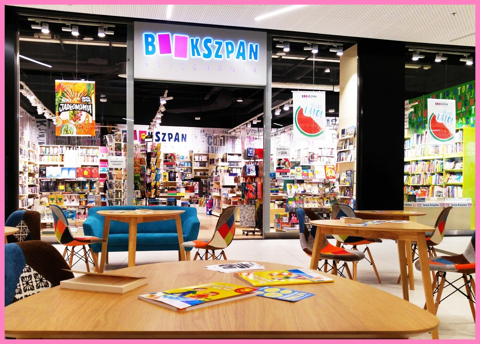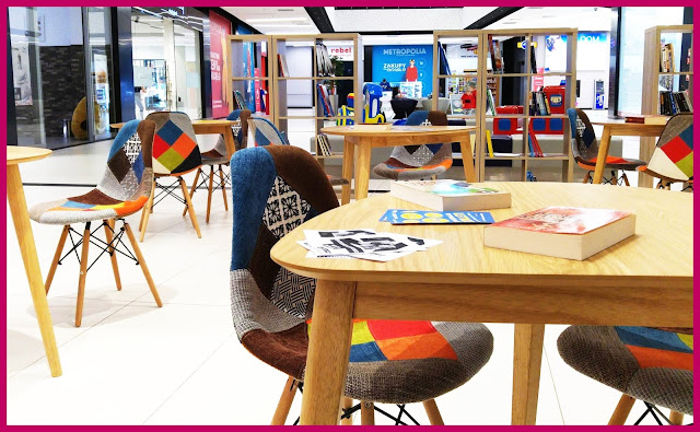 Jak widać jest tu kolorowo i wygodnie. Można przysiąść czekając na pociąg, czy wizytę u fryzjera albo zrobić sobie przystanek w drodze do kina. Można tez się umówić z przyjaciółmi lub na zaczytaną randkę 😉